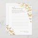 Gold boho butterflies and glitter (digital, not real foil!) decorate this simple and elegant custom bridal shower "Whose memory?" game card that features modern script calligraphy. Personalise it fully, with the bride's name and the date.