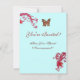 Whimsical gold butterflies, vibrant red fuchsia flourishes , blossoms and blooms in Spring .Original watercolor painting with golden and silver foil by Bulgan Lumini (c)..Easy to customise with your initials and own text as nuptial announcement ,place card ,thank you card, sweet 16 birthdays, picnic block parties,graduation, engagement showers,anniversary or just about any event you wish!
