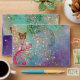 GOLD BUTTERFLY IN TEAL AQUA BLUE SPARKLES SWIRLS ENVELOPE