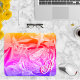 The design features a majestic magical golden fairy-like butterfly with its gorgeous long trail of golden purpled dust, flying over a beautiful and unique liquified marble abstract flower, with purple, pink, orange, and yellow petals. A happy celebration of gradient colours.