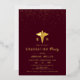 Gold caduceus and confetti Class Of 2026 formal burgundy Registered Nurse graduation gold foil invitation. Honor the achievements of the Class of 2026 nursing school graduate with these elegantly crafted real gold foil invitations. Adorned with a gold caduceus, a well-known emblem of the medical profession and the initials RN, these invitations clearly represent the graduate's area of expertise. The design is enhanced by delicate gold confetti at the upper part, adding a refined touch.