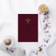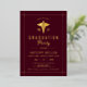 Gold caduceus Class Of 2026 burgundy formal graduation gold foil invitation. Celebrate the accomplishments of the Class of 2026 with these sophisticated burgundy graduation invitations with real gold foil. Each invitation showcases a gold caduceus, a prominent symbol of the medical field, effectively highlighting the graduate's specialization. The elegant design is complemented by subtle gold borders that converge at the corners, providing an air of sophistication. Use this invitation to formally invite family and friends to honor this significant achievement, embodying the graduate's commitment through its exquisite and appropriate design.