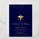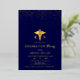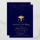 Gold caduceus and confetti Class Of 2026 navy blue formal Registered Nurse graduation gold foil invitation. Honor the achievements of the Class of 2026 nursing school graduate with these elegantly crafted real gold foil navy blue invitations. Adorned with a gold caduceus, a well-known emblem of the medical profession and the initials RN, these invitations clearly represent the graduate's area of expertise. The design is enhanced by delicate gold confetti at the upper part, adding a refined touch.