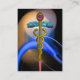 GOLD CADUCEUS IN BLUE PINK YELLOW FRACTAL SWIRLS BUSINESS CARD