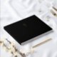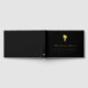 Elegant black funeral guestbook with gold foil text and a gold foil calla lily on the cover. The spine text is also printed in gold foil.