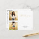 This pretty graduation thank you postcard features two photos and space to write a personal message to recipients. On the left, you can add two square photos of the new graduate. On the right, "Thank you" is written in modern gold calligraphy at the top. Below is a blank area to write custom handwritten notes to recipients. At the bottom, add the graduate's name and graduation year. On the back, there's room to add additional text if desired.