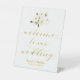 Gold Calligraphy White Floral Welcome Wedding Pedestal Sign