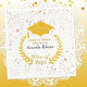 Paper party napkins for that special high school or college graduation party with personalized text. Features image of a gold grad cap and laurel wreath accented with faux gold confetti. Matching paper plate, also black, blue and other color groups available in this same design