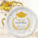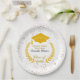 Paper plates for that special high school or college graduation party with personalized text. Features image of a gold grad cap and laurel wreath accented with faux gold confetti. See matching napkins and other color groups also available in this same design