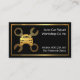 A black cover is accentuated by a faux gold rectangular frame. Here lies a spanner set with a gold car in the middle. To the right you have the business name and its contact details near the base.