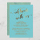 Gold Celebrate with Us on Turquoise w/ Hearts Invitation