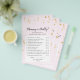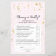 This Gold Celebration on Pink Baby Shower mummy or daddy game is perfect for a classy baby shower or sprinkle for a girl. The design features faux gold decorations on a pale pink background with elegant dark grey calligraphy.