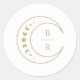 Seal your celestial theme with the "Gold Celestial Initials Wedding Classic Round Sticker." Against a clean white background, the golden crescent moon and stars, complemented by the stylishly simple customisable initials of the couple, become an enchanting emblem. Moon phases delicately incorporated add a layer of symbolism, making these stickers more than just decorative seals.