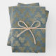 Beautiful metallic gold-colored Celtic spirals shimmer on top of a grey-blue background. Perfect for decoupage art, paper crafts, or gift wrapping.