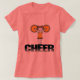 Cheerleading T-shirts, hoodies, tank tops, mugs, cards, stickers, cheerleading magnets, buttons, postage stamps, and other cheerleading apparel and gifts featuring a cheerleader in a gold uniform with gold pom poms.