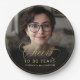 Serve in style with these Gold Cheers to 30 Years custom photo birthday paper plates. Featuring your photo and elegant gold script text on a bold black background, these personalised plates add a chic touch to your milestone 30th birthday party. Perfect for cake, snacks, or party food, they coordinate beautifully with matching napkins, invitations, and décor to create a cohesive black-and-gold party theme.