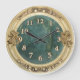 10.75” round acrylic wall clock with an image of green jade in an ornate gold frame with two gold cherubs. See the entire Gemstones & Medallions Clock collection in the HOME section.