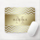 Gold Chevron Grey Pattern Monogram Personalise Mouse Pad