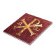 The Monogram of Christ (Chi Rho) or the Christogram is made by the first 2 Greek letters of Christ's name: K & R. According to the legend Constantine the Great saw it in a dream before a battle along with the words "In hoc signo vinces" (through this sign, thou shalt win). The emperor used it as his coat of arms and won. After his miraculous victory he legalised Christianity in the entire Roman Empire.