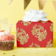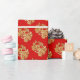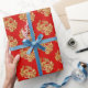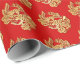 Customisable red wrapping paper with gold traditional Chinese paper-cut of a Rabbit (model n°1). Perfect for Chinese New Year of the Rabbit 2023 or birthday (people born in Rabbit Year).