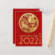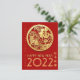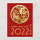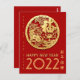 Golden Chinese paper-cut of a tiger (model n°4) into a circle with large Fu (Luck or Fortune) ideogram + Happy New Year in Chinese and English, Year of the tiger and large 2022. Design on vertical basic postcard with red background. You can easily change background colour and year (font,colour, size and position) by clicking the customise button. Matching greeting card. Perfect for a modern and timeless Chinese New Year of the Tiger 2022. ----- "The Tiger (寅) is one of the 12-year cycle of animals which appear in the Chinese zodiac related to the Chinese calendar. The Year of the Tiger is associated with the Earthly Branch symbol 寅. (...) People born within these date ranges can be said to have been born in the "Year of the Tiger", while also bearing the following elemental sign: