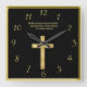 Gold Christian Faith cross with funny saying 2 Square Wall Clock