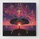 Gold Christian Faith cross with funny saying Squar Square Wall Clock