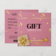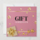 Festive glamourous high quality holiday design featuring luxury gold gift box, bow and ribbon with golden stars and Christmas tree ball on a simple plain pastel rose pink background. This elegant and modern gift certificate is perfect for your small business or to gift friends and family, especially for Christmas holiday time.