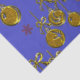 Gold Christmas Baubles on Blue Christmas Tissue Paper