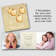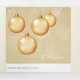 The cover of this trifold Holiday greeting card has a pretty image of gold patterned tree bulbs hanging against a medium gold background filled with snowflakes. At the bottom is the stylised text "Merry Christmas" in white. Inside, there are photo templates on the first and third panel. The middle panel has your custom text in green and gold divided into sections by ornate gold snowflakes. The back contains another photo template and a second image of the bulbs and snowflakes with your custom text. Elegant, festive and easy to customise!