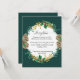 WEDDING RECEPTION INSERT FOR YOUR INVITATIONS. "Gold Christmas Forest Foliage Wedding Reception." Deep forest, hunter green background is paired with hand drawn leaf foliage in gold glitter. A wreath made from simple sprigs of evergreen leaf and berry foliage ad holly greenery at the top finishes off the design. All art was painted by internationally renowned and licensed artist, Audrey Jeanne Roberts, copyright.