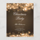 Elegant Christmas Holiday Party invitation with Program and Menu featuring Christmas Lights in Gold.