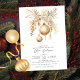 This elegant Christmas holiday bridal shower invitation features gorgeous watercolor gold Christmas ornaments with delicate pine branches and golden ribbons. The invitation is perfect for celebrating the upcoming bride during the holiday season. The front of the invitation features the watercolor gold Christmas ornaments and the bride's name, date, and time of the shower. The overall design is festive and sophisticated, and the invitation is sure to impress your guests.