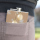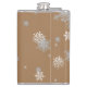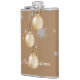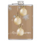 Enjoy your favourite alcoholic beverages this holiday season with a Gold Christmas Ornaments Vinyl Wrapped Flask. Flask design features a trio of hanging Christmas ornaments with falling snowflakes and a dark gold background. Additional gift and holiday items available with this design as well.
