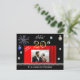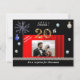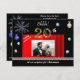 Chic Black and Gold invitation with red silk Christmas decorations and a unique gold glitter number.