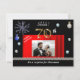 Chic Black and Gold invitation with red silk Christmas decorations and a unique gold glitter number.