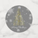 Decorate tables and counter spaces for family get together's or holiday parties with Gold Christmas Tree and Snowflakes Table Confetti. Confetti design features a vibrant artistic Christmas tree with falling snowflakes and a dark grey background. Additional gift and holiday items available with this design as well.