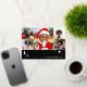 Spread Christmas cheer with a custom photo holiday card! This gold foil design includes six of your favourite photos — perfect for photos of kids, family, friends, and pets. Personalise the template with your family name, and a personal message. It features a photo collage and script typography, with festive tree and star motifs — a blend of traditional Christmas elements and modern style, with simple, clean lines and geometric shapes. Printed colours: black, white and real foil elements in gold, silver or rose gold.