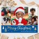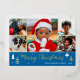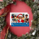 Spread Christmas cheer with a custom photo holiday card! This gold foil design includes six of your favourite photos — perfect for photos of kids, family, friends, and pets. Personalise the template with your family name, and a personal message. It features a photo collage and script typography, with festive tree and star motifs — a blend of traditional Christmas elements and modern style, with simple, clean lines and geometric shapes. Printed colours: blue, white and real foil elements in gold, silver or rose gold.