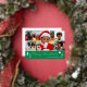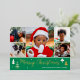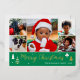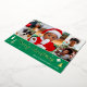 Spread Christmas cheer with a custom photo holiday card! This gold foil design includes six of your favourite photos — perfect for photos of kids, family, friends, and pets. Personalise the template with your family name, and a personal message. It features a photo collage and script typography, with festive tree and star motifs — a blend of traditional Christmas elements and modern style, with simple, clean lines and geometric shapes. Printed colours: green, white and real foil elements in gold, silver or rose gold.