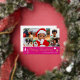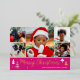 Spread Christmas cheer with a custom photo holiday card! This gold foil design includes six of your favourite photos — perfect for photos of kids, family, friends, and pets. Personalise the template with your family name, and a personal message. It features a photo collage and script typography, with festive tree and star motifs — a blend of traditional Christmas elements and modern style, with simple, clean lines and geometric shapes. Printed colours: pink, white and real foil elements in gold, silver or rose gold.