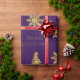 Gold Christmas Tree Snowflake on Purple Wrapping Paper