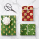 Gold Christmas Trees, Poinsettias and Reindeers Wrapping Paper Sheet