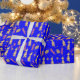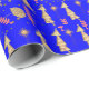 Gold Christmas Trees Wrapping Paper Blue