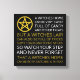 Gold Circled Pentagram, Halloween Canvas Print. Great for Halloween fans. This print is completely customizable and the colors and fonts can all be personalized. The Gold Circled Pentagram giving it a simple yet elegant and mystic design. The magic spell which can also be customized reads: "A WITCHES HOME CAN BE VERY SWEET, FULL OF CANDY AND OTHER TREATS. BUT A WITCHES LAIR CAN ALSO BE FULL OF TRICKS, SLIMY TOADS AND FLYING STICKS. SO WATCH YOUR STEP AND NEVER FORGET, THAT A WITCHES HOME CAN BE BOTH SAFE AND A THREAT."