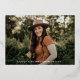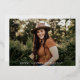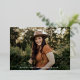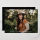 Celebrate the grad with our stylish photo graduation announcement. The graduation announcement displays the graduate's photo with "Class of 2024" in a real gold foil calligraphy script overlay. Personalise the front of the modern graduation announcement by adding the graduate's name, school name, and graduation year. The announcement reverses to feature a trendy black and white dotted geometric pattern. The design is perfect for both high school and college graduates.