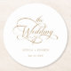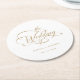 Gold Classy Calligraphy Wedding Round Paper Coaster