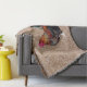 A beautiful small blanket that is perfect for covering your legs while curled up in front of the fire, or for a decorative touch on the sofa. We also think it looks brilliant as a Christmas table centerpiece. We are delighted with it. The colors are absolutely perfect. Vibrant yet traditional. The pattern retains its lovely details despite the texture of the fabric. Very classy product that will not disappoint as a gift.