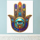 Gold Colorful Hamsa Turquoise Sapphire Third Eye Canvas Print
