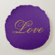 Gold Colour Script Love Purple Calligraphy Round Cushion